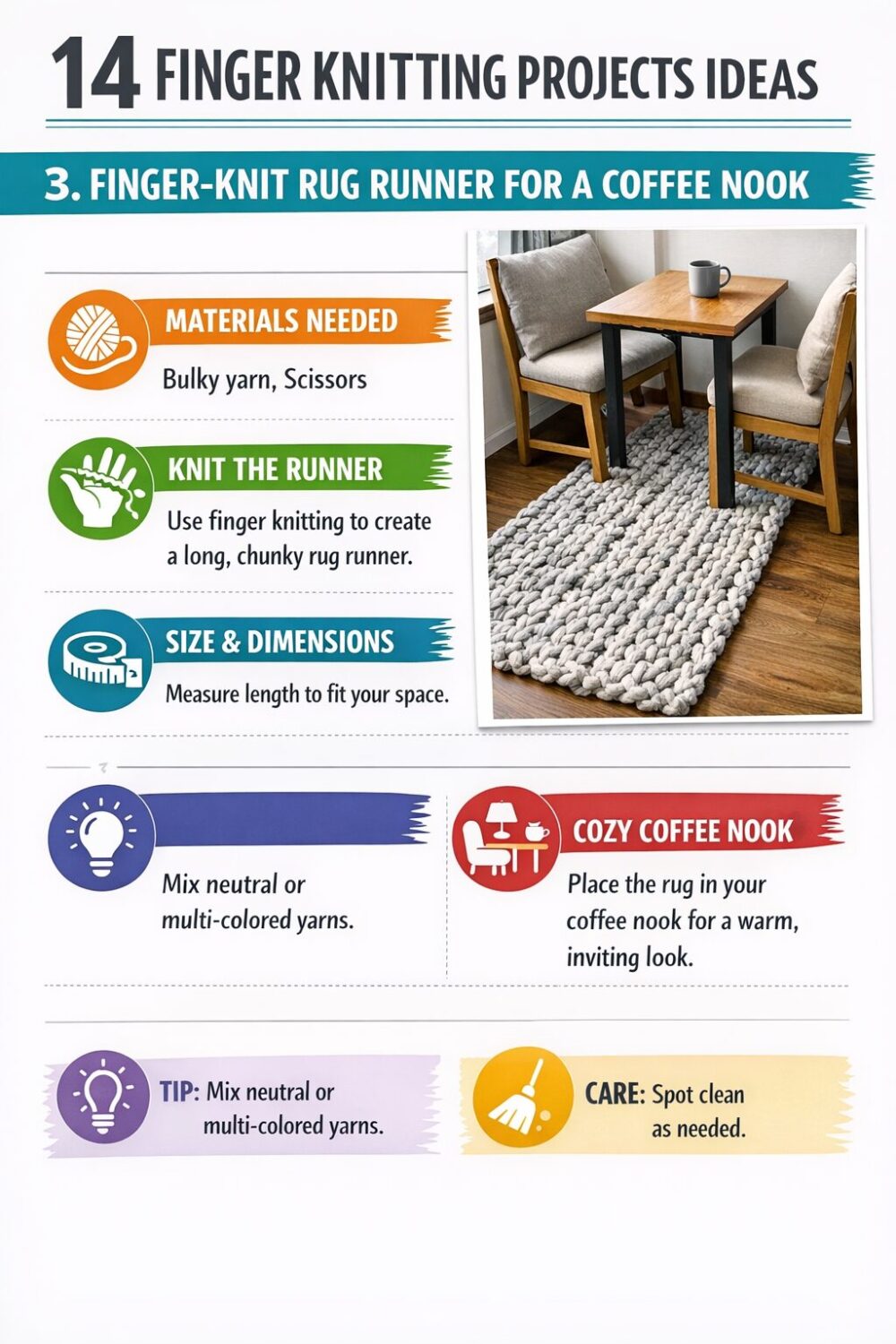 3. Finger-Knit Rug Runner for a Coffee Nook