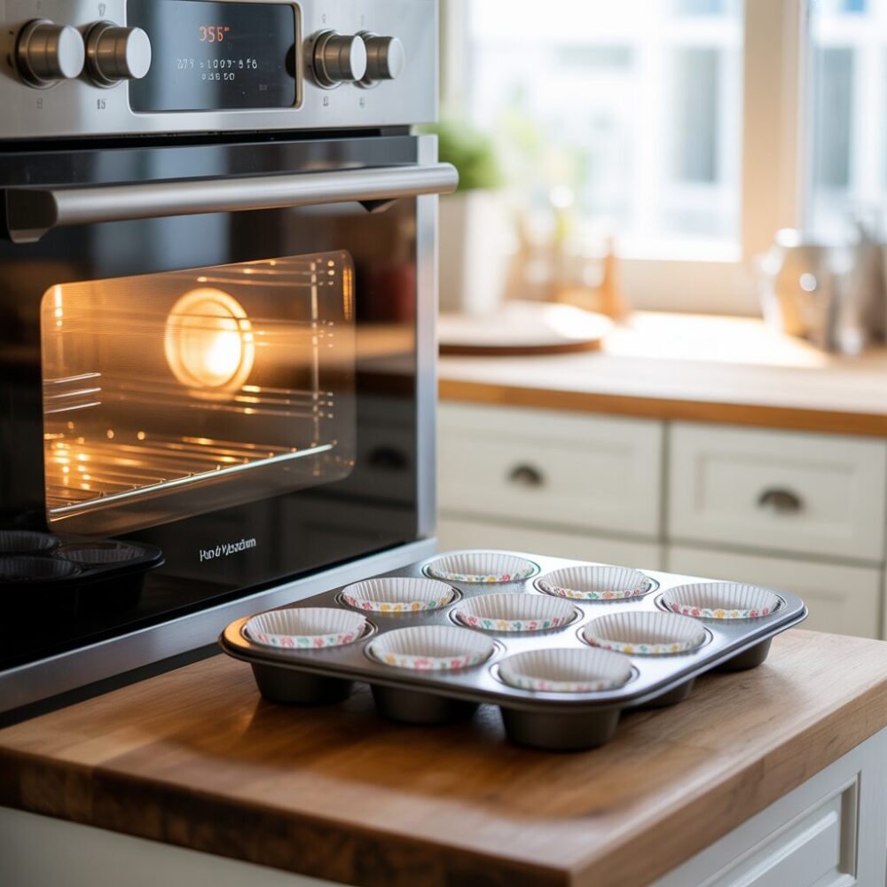 Start by turning on your oven and setting it to 350°F (175°C). Give it at least 10 minutes to fully heat up before you place your muffins inside. Baking in a properly heated oven is important. It helps the muffins rise correctly and bake evenly.