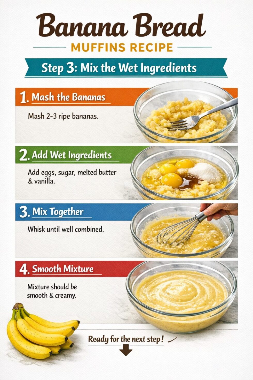 To make banana bread muffins, mash three ripe bananas and mix them with melted butter, sugar, eggs, and vanilla. Stir in flour, baking soda, and salt. Pour the batter into a muffin tin and bake at 350°F (175°C) for 20 to 25 minutes. That is the short version. Keep reading for the full detailed guide.