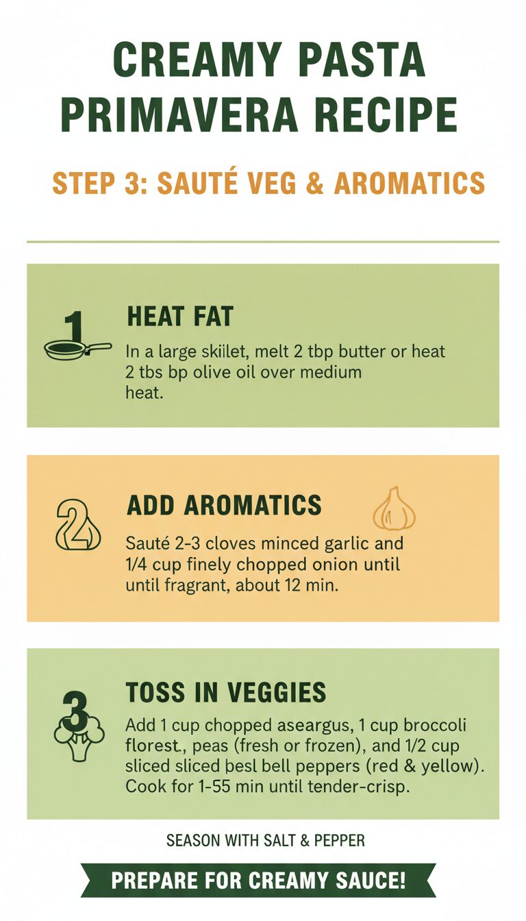 If you’re cooking for a family, this recipe scales well. It’s also great for entertaining because you can prep the veggies ahead of time and finish the dish in minutes. The trick is to keep things moving: boil the pasta, sauté the vegetables to crisp-tender, and fold everything into a smooth, glossy sauce just before serving.